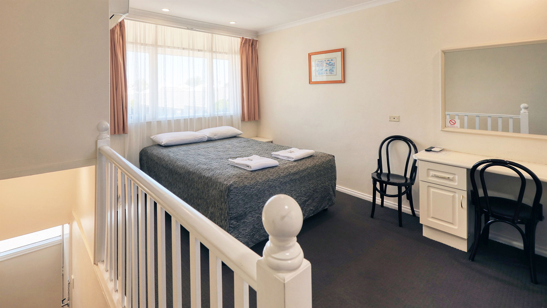 Our upsatairs and downstairs queen rooms feature a wardrobe, heating, flat-screen TV and wash basin for your convenience. These rooms offer 2 comfortable beds.